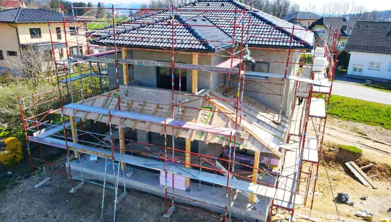Prav to je pogosto ena največjih prednosti individualne zasnove, saj lahko hiša zelo naravno sledi prostoru, v katerega je umeščena, hkrati pa ostane sodobna in prilagojena današnjemu načinu bivanja. Ko se takšen projekt začne dvigovati na terenu in ko konstrukcija iz načrta preide v prostor, postane jasno, da ne nastaja zgolj še ena nova hiša, ampak dom, ki ima že v svoji osnovi neko zgodbo in jasen razlog, zakaj je videti prav tako, kot je.