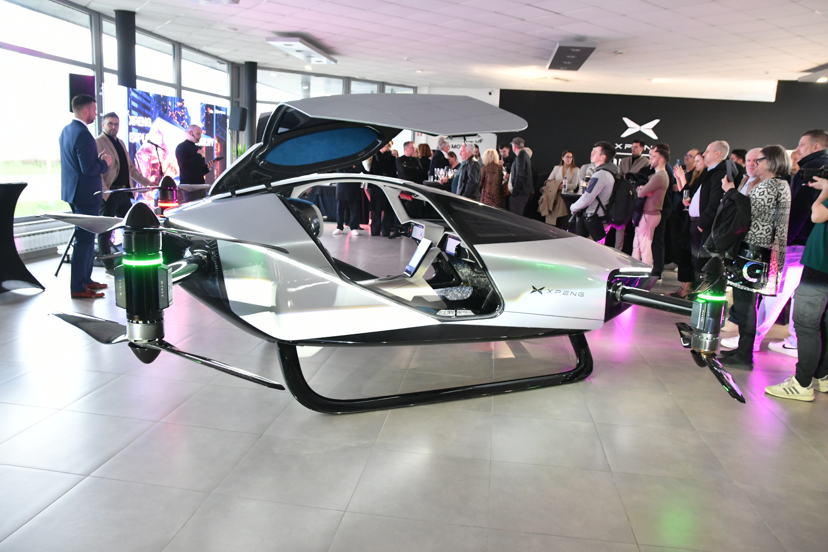 Največ pogledov je pričakovano požel futuristični leteči taksi dron XPENG AEROHT X2, ki ga bo v novoodprtem salonu mogoče videti še nekaj dni. Gre za električno vozilo z vertikalnim vzletanjem in pristajanjem, ki ga vodstvo podjetja v kitajskem Guangzhouju že uporablja za vsakodnevne prelete mesta.
