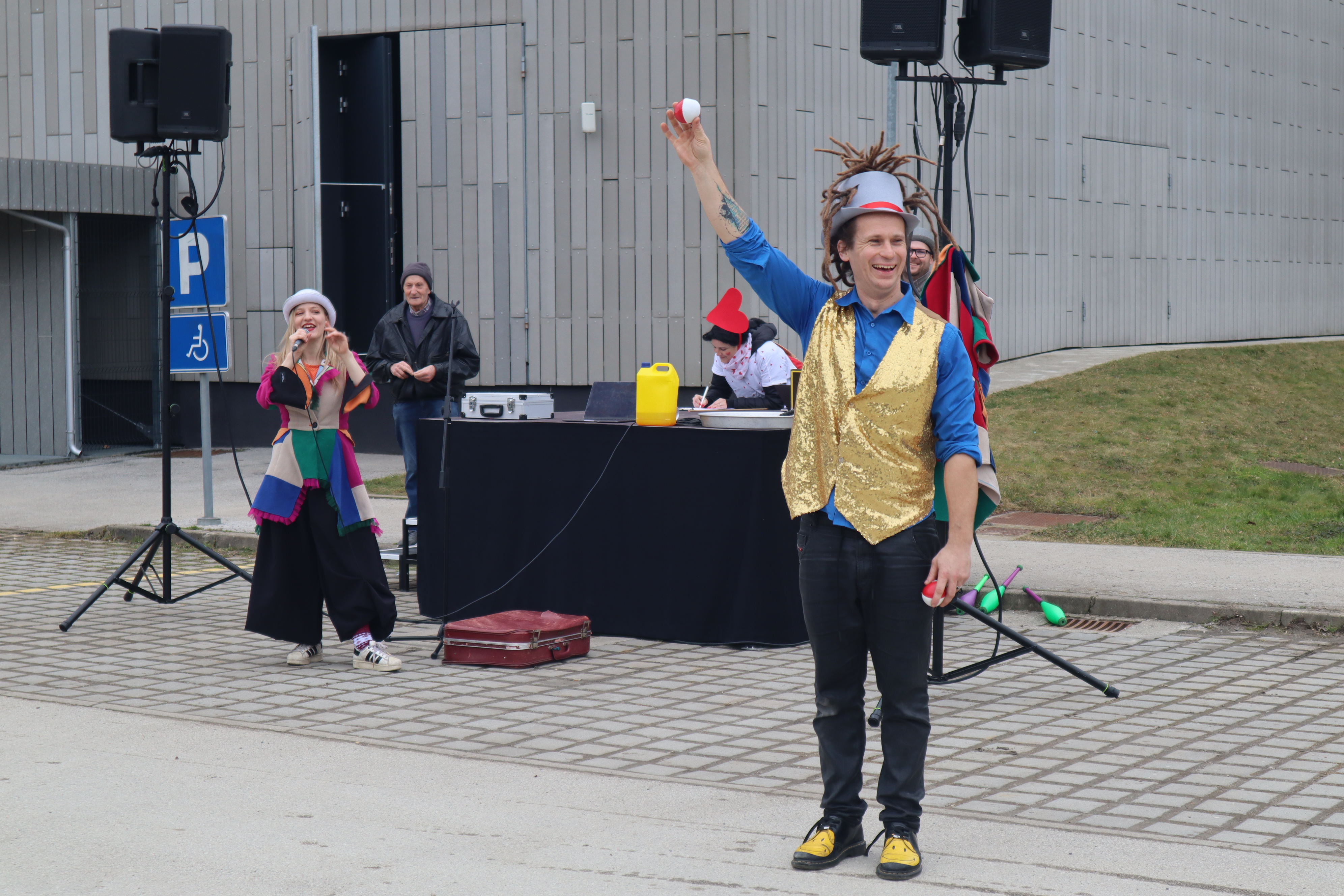 Na prizorišču pri Hramu kulture sta obiskovalce pričakala člana dua Arbadakarba, slovenski čarovniški in iluzionistični dvojec, ki sta s publiko delila številne osupljive trike. S svojo energijo, humorjem in interaktivnim nastopom sta navdušila tako najmlajše kot odrasle ter poskrbela za dodatno mero čarobnosti v že tako razigranem pustnem vzdušju.