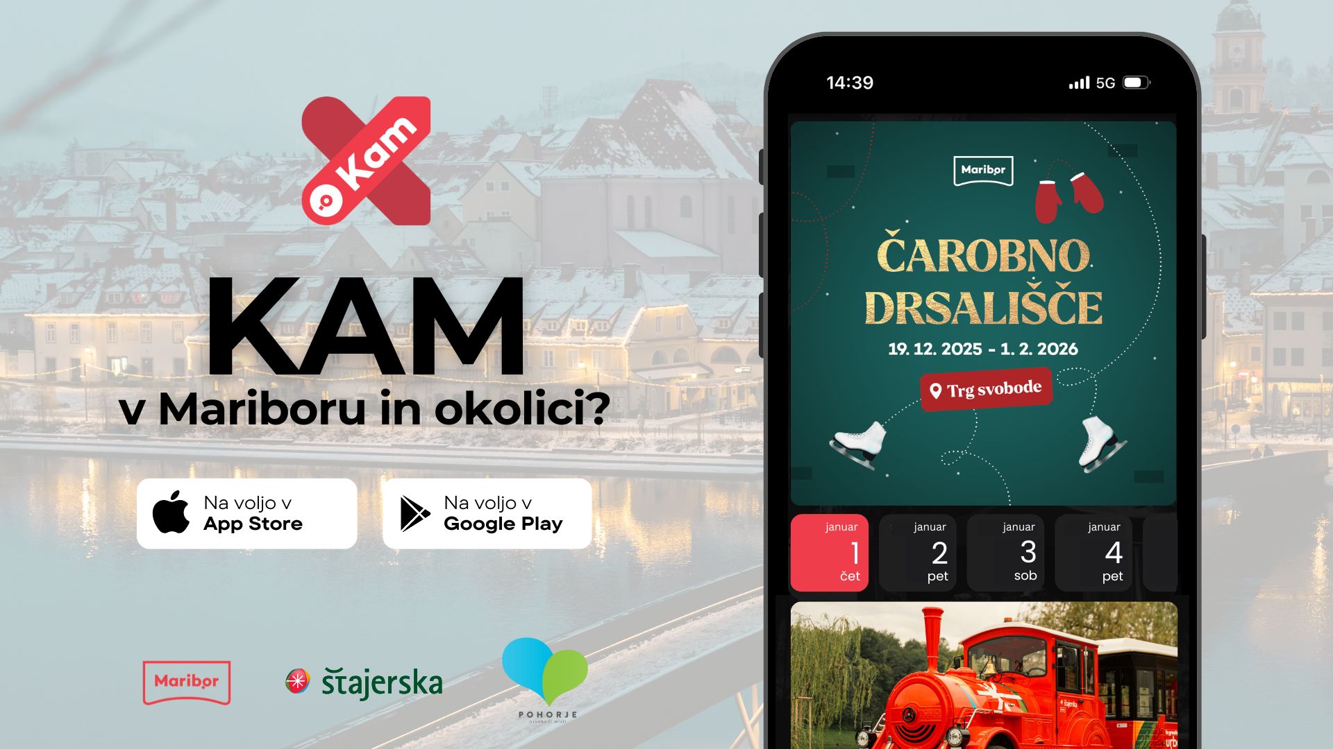 Za še več dogodkov v Mariboru in okolici prenesite brezplačno mobilno aplikacijo KAM. Hitro in enostavno odkrijte, kaj se dogaja v mestu – vsak dan, povsod.