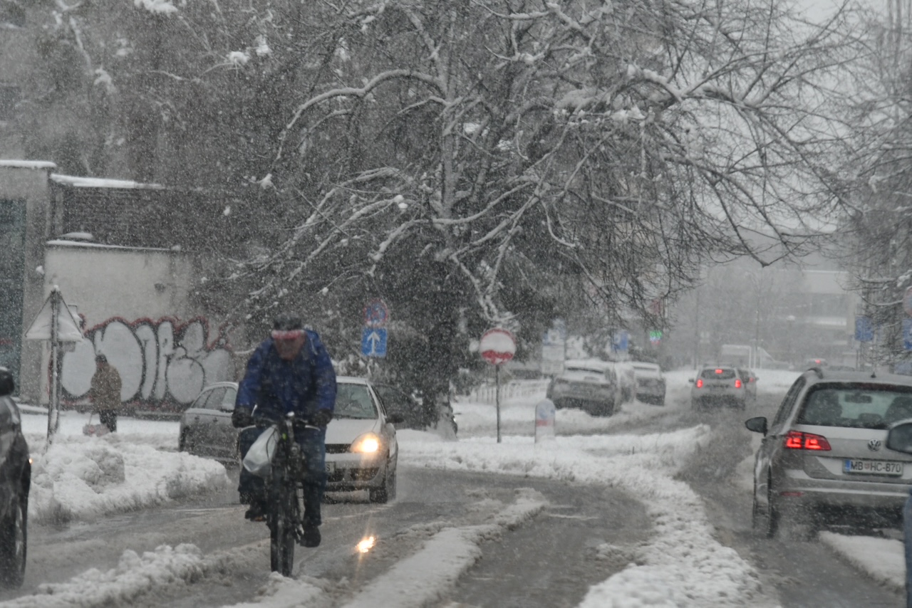 Kot poroča ARSO, je najbolj obilno sneženje danes zajelo severovzhod države, največ snega pa je zapadlo na Kozjaku in Pohorju. Po nižinah severovzhodne Slovenije je zapadlo do 10 centimetrov snega, s terena pa poročajo o snegolomu. Do okoli 15. ure za severovzhod države velja oranžno vremensko opozorilo zaradi sneženja, obstaja pa tudi velika splošna nevarnost snežnih plazov, saj je po podatkih ARSA, na številnih dovolj strmih pobočjih snežna odeja le slabo do zmerno stabilna. V Mariboru je do sedaj zapadlo približno 10 centimetrov snega, še poroča ARSO.
