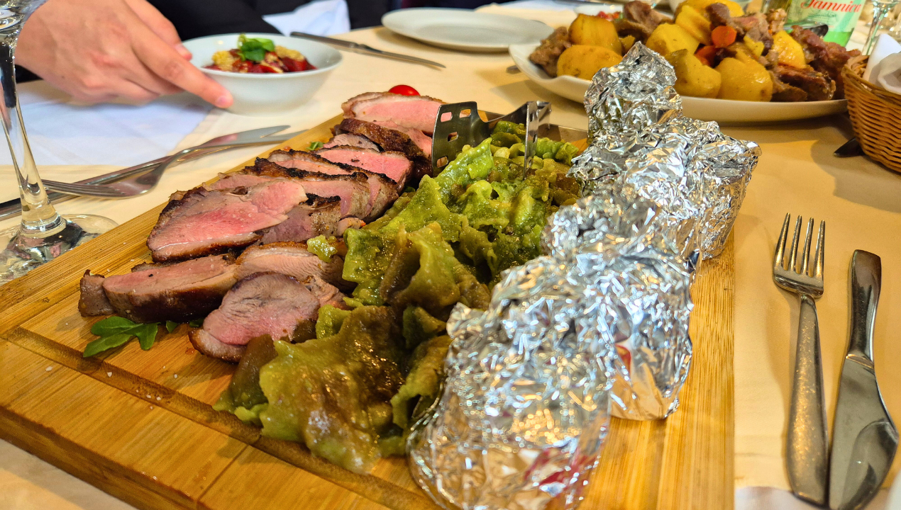 Od aperitiva pa do bogato obloženih krožnikov, ki so v teh koncih res topli in domači – ne v slogu masovnega turizma, ki trži domačo kulinariko, ampak zares domači.